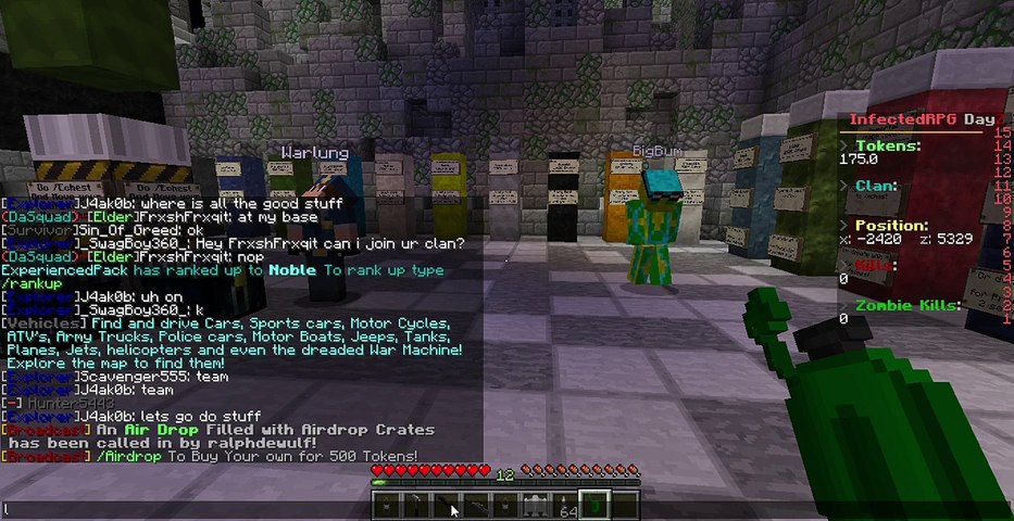 You can use one of many guns to protect you from zombies and players,you can create your own faction and survive with friends.you can kill players for money or sell iron ingot to buy guns from spawn.we have a special texture pack for our server to make you.